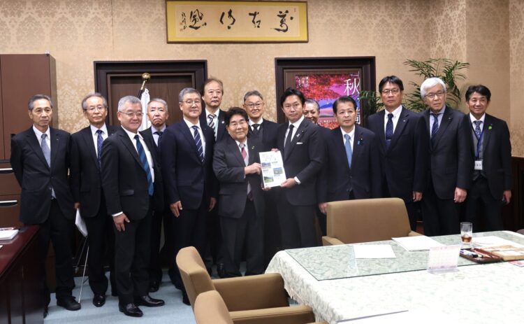 令和8年度予算の編成並びに令和7年度補正予算の編成時期を迎え、農業農村整備事業に係る施策を確実に推進するため、関東一都九県土地改良事業団体連合会役員が一同に会して、要請・要望・提案行動を行った。