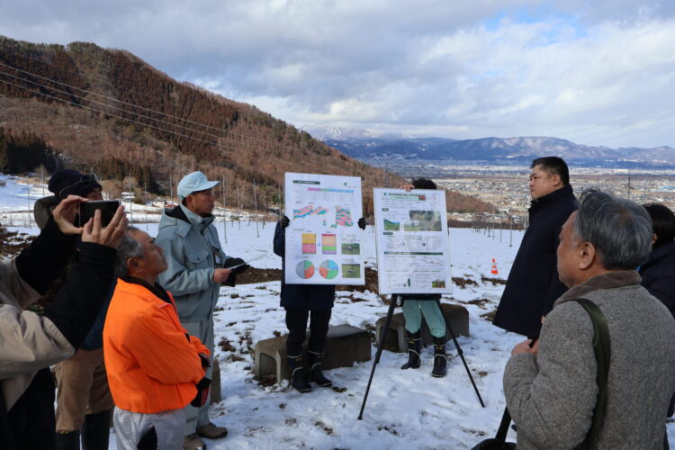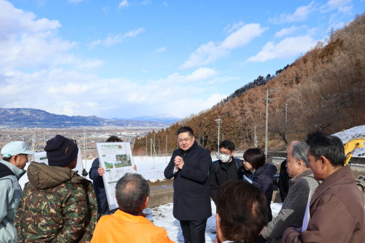 山本政務官は令和8年1月14日(水)に、農地中間管理機構関連農地整備事業「綿内東町地区山新田工区」を現地視察されました。