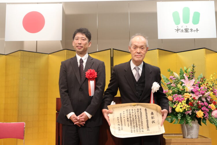 令和8年3月25日、東京都砂防会館シェーンバッハ・サボーにおいて、全国土地改良事業団体連合会が、多年にわたり土地改良事業において特に顕著な功績があった団体並びに個人に対し、その功績をたたえるため全国水土里ネット表彰式を開催した。
